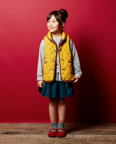 Vest ¥3,500+tax / Sweat P/O ¥2,900+tax / Skirt ¥3,300+tax / Socks ¥800+tax / Shoes ¥3,900+tax
