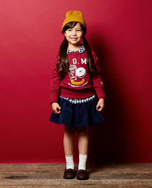 "Champion" Print Sweat ¥3,300+tax / Shirt ¥2,900+tax / Skirt ¥2,900+tax / Knit Cap ¥1,900+tax / Socks ¥1,000+tax / Shoes ¥3,900+tax