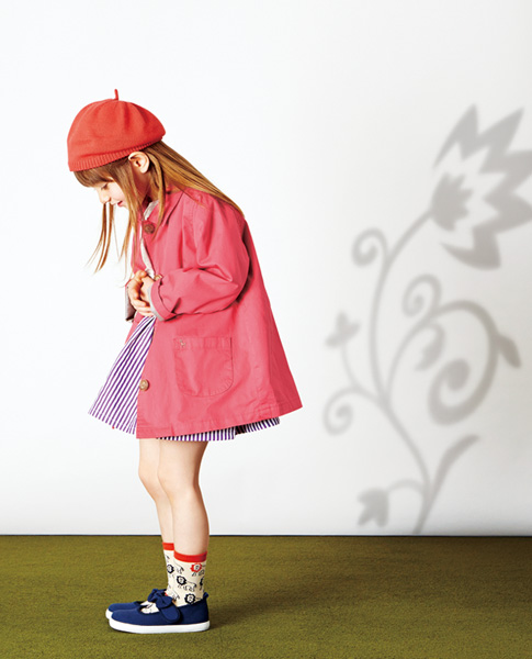 Coat ¥4,200+tax / One piece ¥2,500+tax / Beret ¥1,900+tax / Socks ¥700+tax / Shoes ¥3,300+tax