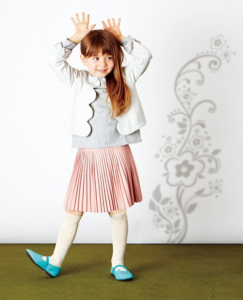 Cardigan ¥3,500+tax / Cut & sewn ¥2,300+tax / "2way" Skirt ¥3,300+tax / Socks ¥700+tax / Shoes ¥3,300+tax