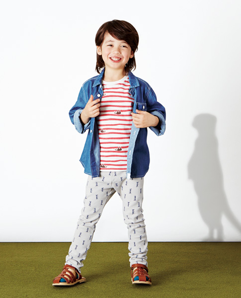 Shirt ¥2,900+tax / T-shirt ¥1,900+tax / Pants ¥2,300+tax / Sandals ¥3,900+tax / Socks ¥900+tax