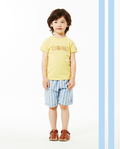 "Thomas" T-shirt ¥2,300+tax / "Thomas" Pants ¥2,900+tax / Sandals ¥3,900+tax