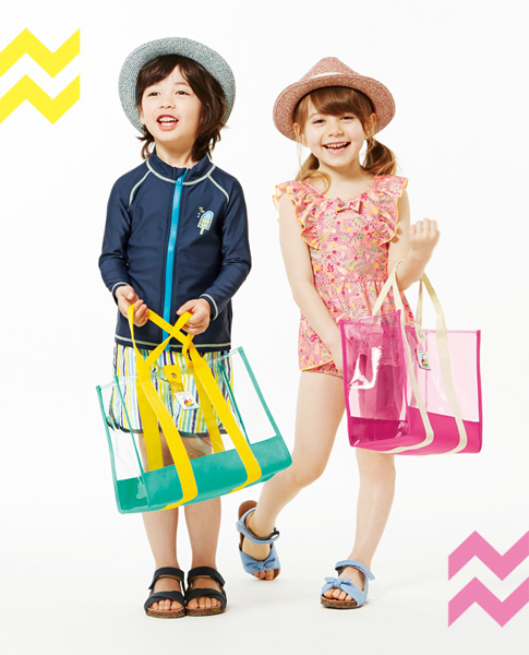 [GIRL] Hat ¥2,900+tax / Swim onepiece ¥3,500+tax / Pool bag ¥3,300+tax / Sandals ¥3,700+tax