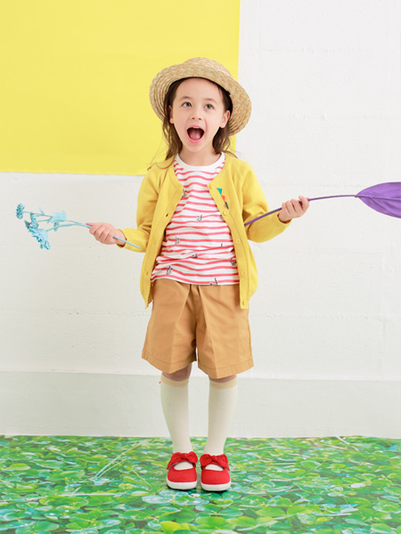 Cardigan ¥3,500+tax / T-shirt ¥1,900+tax / Short pants ¥3,300+tax / Hat ¥3,300+tax / Socks ¥700+tax / Shoes ¥3,300+tax