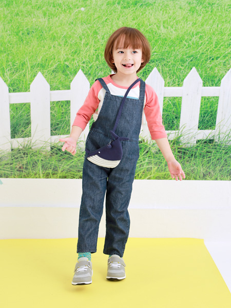 Denim Overalls ¥3,900+tax / T-shirt ¥1,900+tax / Pochette ¥2,200+tax / Shoes ¥2,900+tax